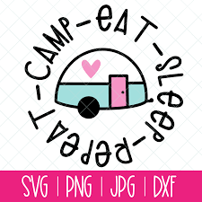 Camp Eat Sleep Repeat Cut Files With Cute Vintage Trailer for Cricut